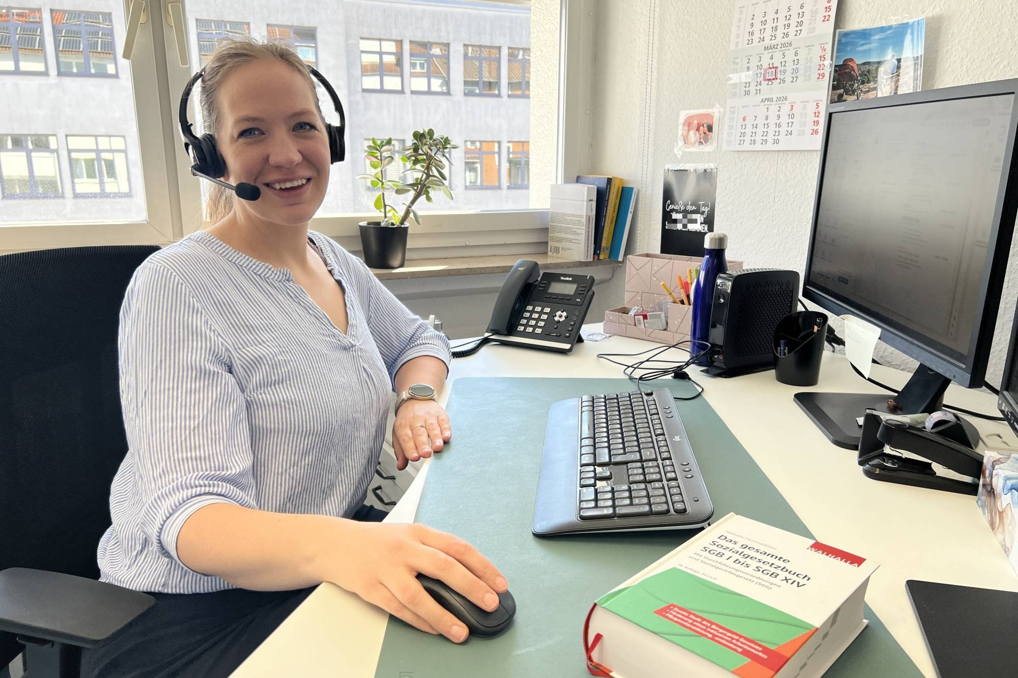 Beim VdK-Servicetelefon können Mitglieder Termine vereinbaren, Fragen zur Mitgliedschaft stellen oder sich nach dem Stand ihres Verfahrens erkundigen. Sozialrechtsberaterin Maren Nolte unterstützt das Team bei juristischen Fragen.